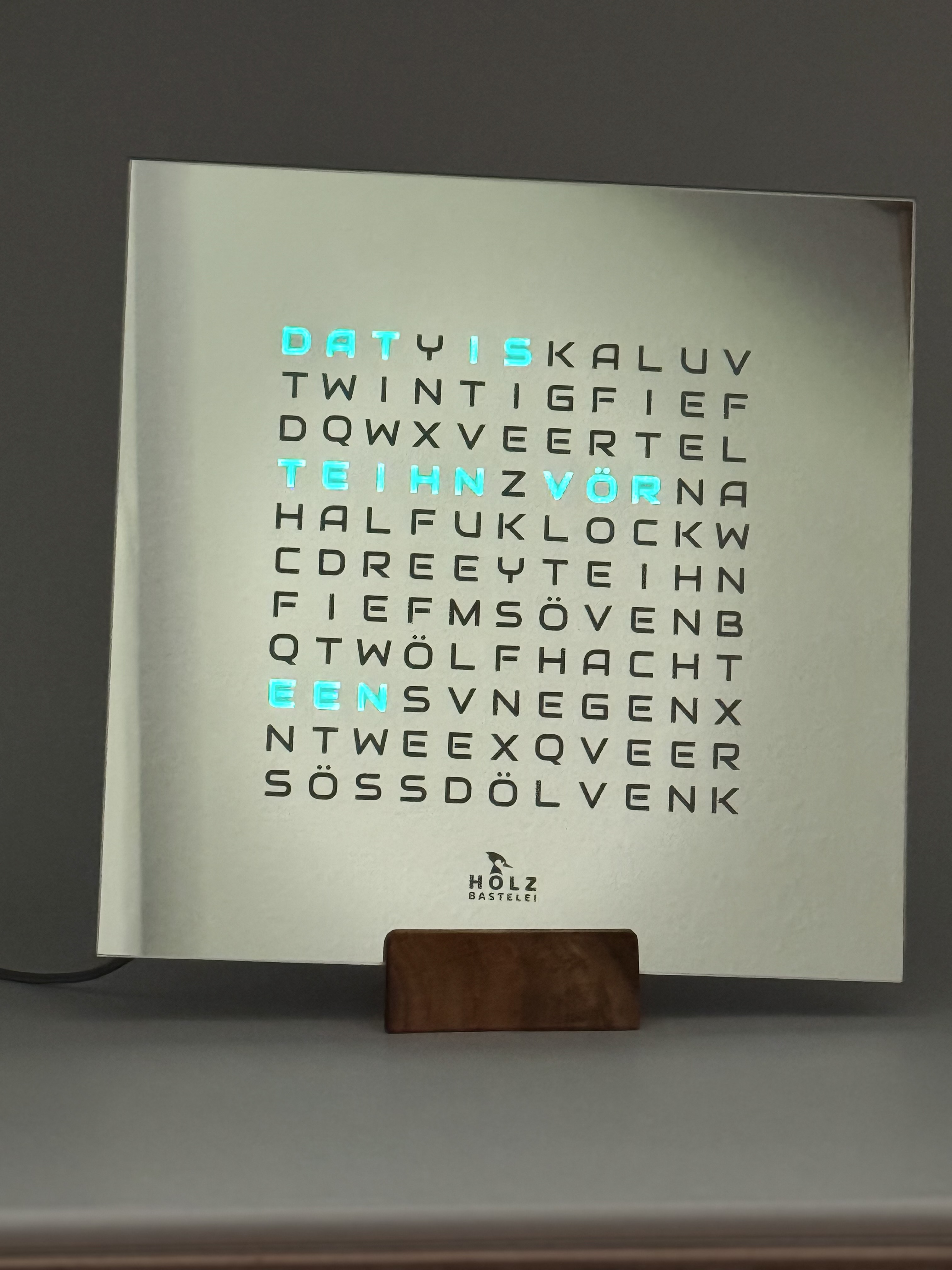 Anstelle der Uhrzeit zeigt diese "Uhr" das aktuelle Wetter - ebenfalls "op Platt". Die Anzeige gibt euch die Wettervorhersage der aktuellen Stunde bzw. der beiden kommenden Stunden im 10 Sekundentakt wechselnd und bringt so norddeutschen Charme direkt in die Anzeige.
